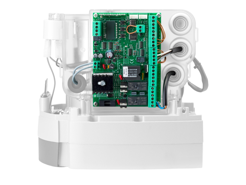• Motoréducteur électromécanique 24 Vdc autobloquant avec bras articulé anti-cisaillement